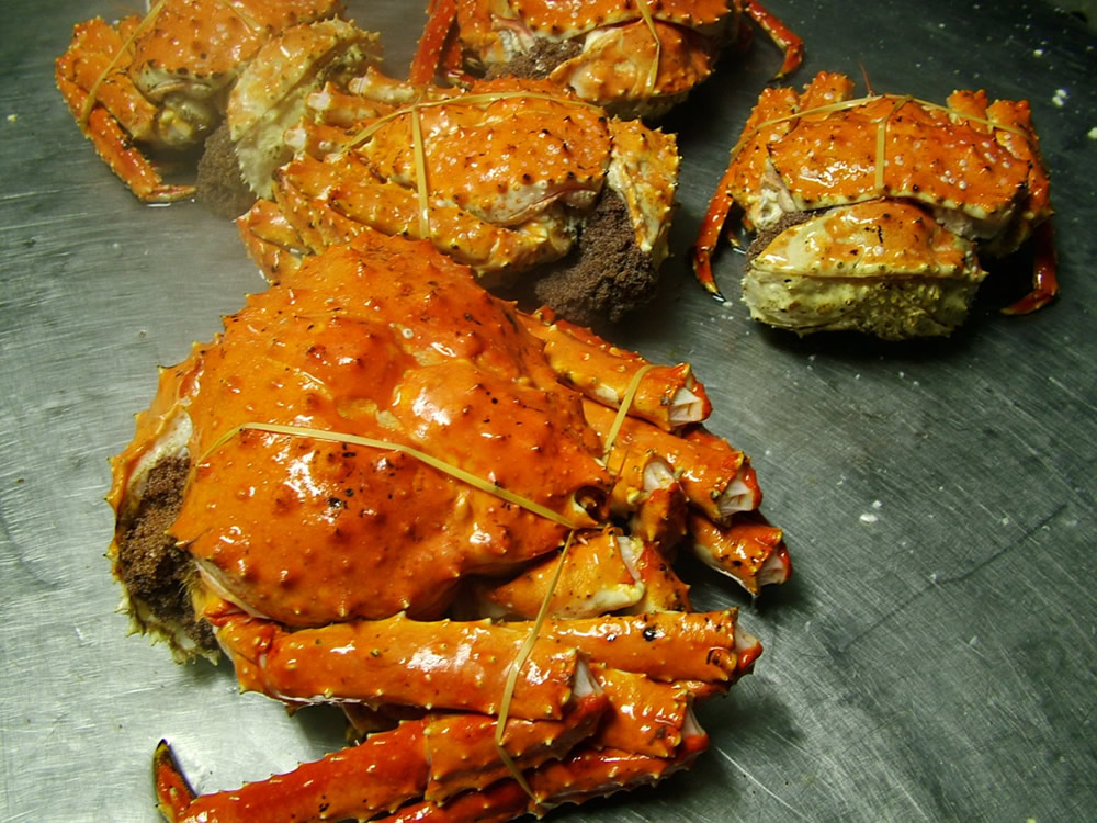 ![]() オスのタラバガニは、3キロ、4キロとどんどん大きくなりますが、メスのゆでタラバガニのほとんどが、1キロ台、2キロ台です。 しかも、卵の重量がかなりのウェイトをしめます。 |